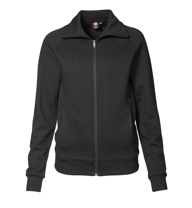 Jacke in kräftiger Qualität mit durchgehendem Reißverschluss, zwei Schubtaschen und Raglanärmel. Nackenband, Ripp an Ärmeln und Bund und schicke Flatlocksteppnähte. Weiche, angeraute Innenseite. Leicht figurbetont.