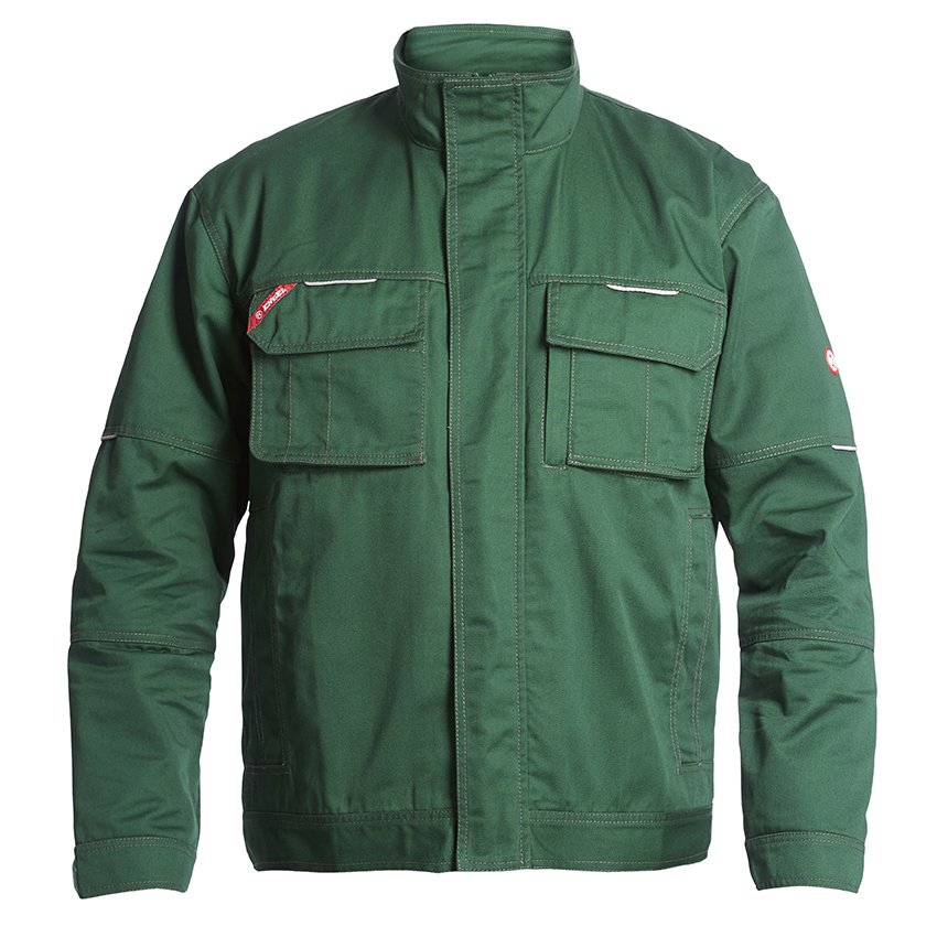 Funktionelle Arbeitsjacke mit Kontraststeppnähten. Verdeckter Reißverschluss und Klettverschluss vorn. Zwei geräumige Einschubtaschen vorn. Zwei Brusttaschen mit Patte und Klettverschluss. Rechte Brusttasche mit Fächern (z. B. für Stifte). Linke Tasche mit Paspeltasche mit Reißverschluss, Schlaufe mit D-Ring und extra Tasche mit Fach für Werkzeug. Zwei geräumige Innentaschen mit Klettverschluss. Gute Sichtbarkeit durch Reflexpaspeln.