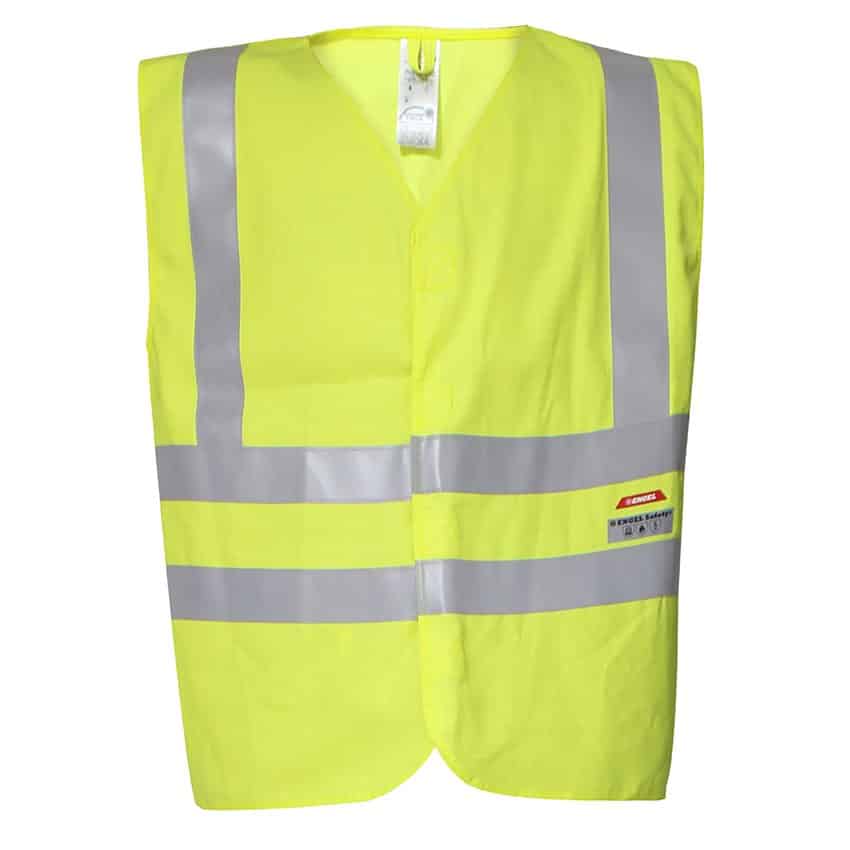 Weste mit Klettverschluss vorn. Reflexstreifen um Schulter und Taille. EN 20471 Bekleidungsklasse 2. Antistatisch und flammhemmend.