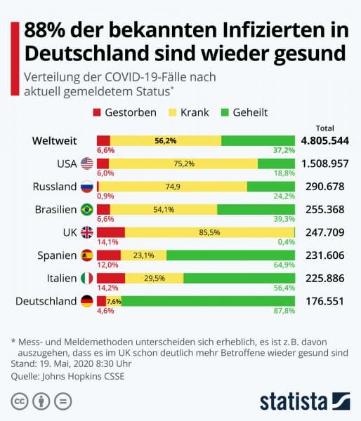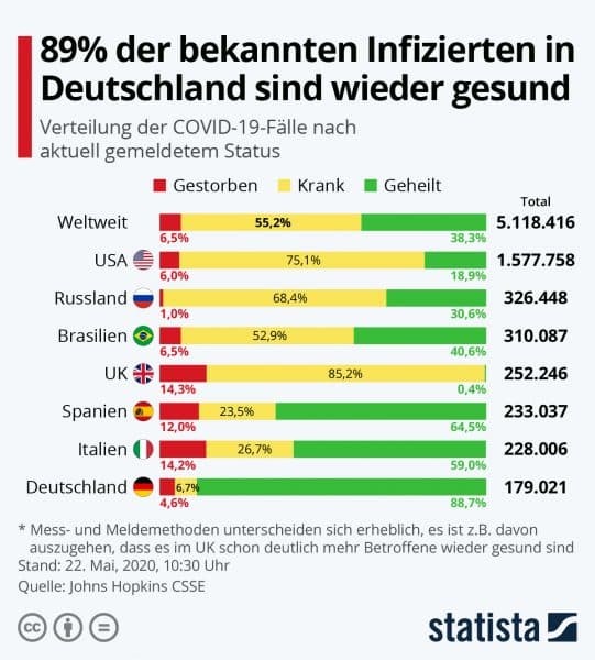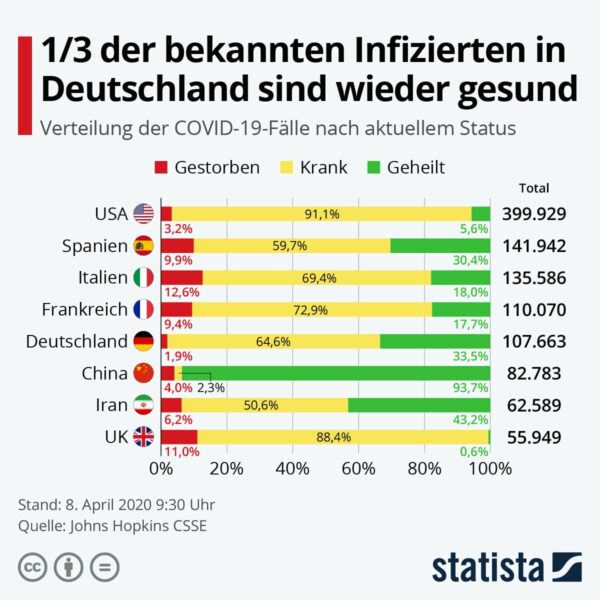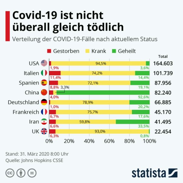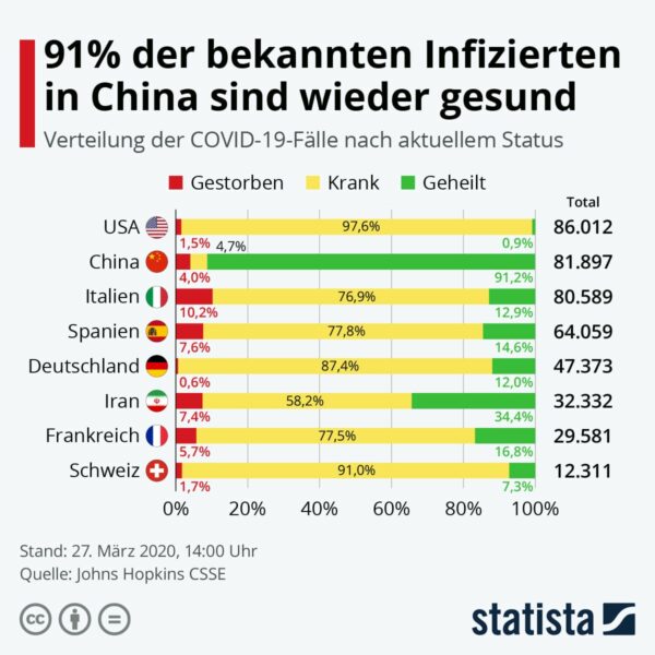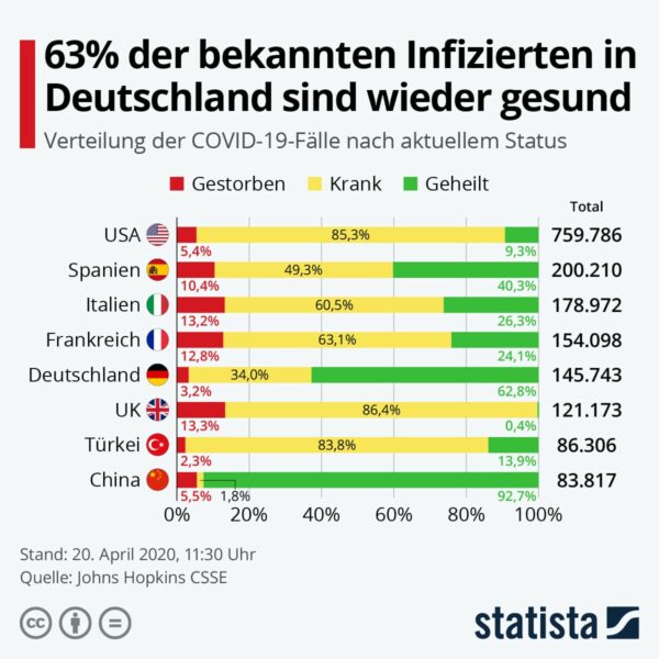 Es steht außer Frage, dass Ihre Gesundheit, die Ihrer Familien, Ihrer Mitarbeiter und auch unsere eigene ganz vorn steht! Um einzuschätzen wo wir stehen, betrachten wir täglich die Statistiken, die uns zur Verfügung stehen und versuchen uns ein möglichst sachliches Bild der Situation zu machen. Doch auch wir sind weder Virologen noch Mediziner und können nur eine Meinung zur aktuellen Lage haben. Stimmen die Zahlen, so sehen wir, dass innerhalb von 4 Wochen die meisten Menschen in China geheilt wurden, was uns allen Mut macht und einen möglichen Stillstand überschaubar.