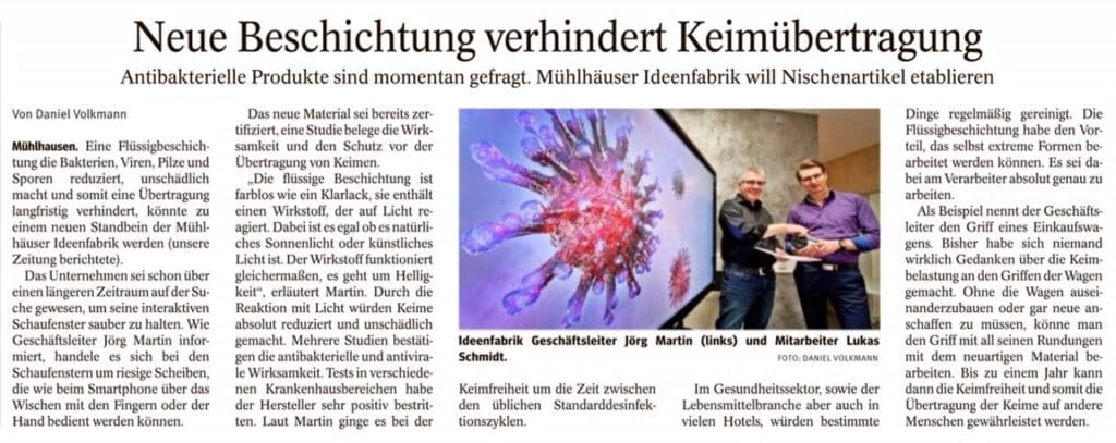 Die Thüringer Allgemeine schrieb: „Neue Beschichtung verhindert Keimübertragung.“