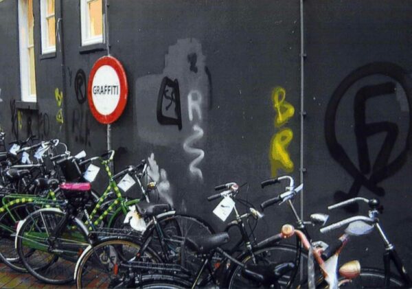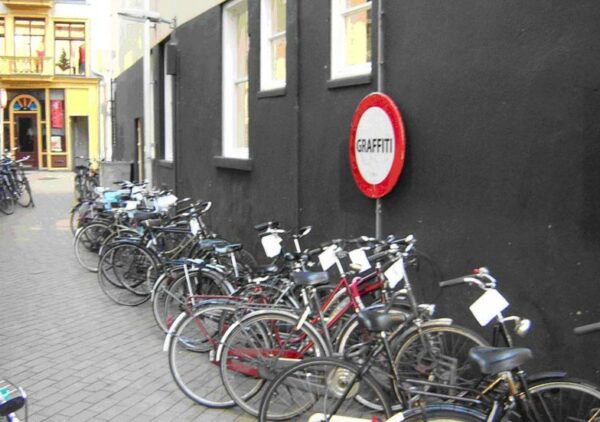 Das erste Experiment fand in Groningen in einer Gasse eines Einkaufsviertels statt. Die Gasse ist für das häufige Abstellen von Fahrrädern bekannt. Bei dem Experiment wurden weiße Flyer mit dem Spruch „we wish everybody happy holidays“ so an die Lenker der Fahrradlenker gebunden, dass diese zur Bedienung des Fahrrads abgemacht werden mussten. Die Fahrradbesitzer hatten somit die Wahl, ob sie den Flyer wegwerfen oder mitnehmen. Die Abfallkörbe am Fahrradabstellplatz wurden abmontiert und ein ausfälliges Standardverbotsschild an die Fassade gebracht, welches ein Verbot für Graffiti aussprach.