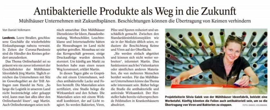 Die Thüringer Allgemeine schreibt über die Ideenfabrik GmbH: „Mühlhäuser Unternehmen plant für die Zeit nach der Corona-Krise.“