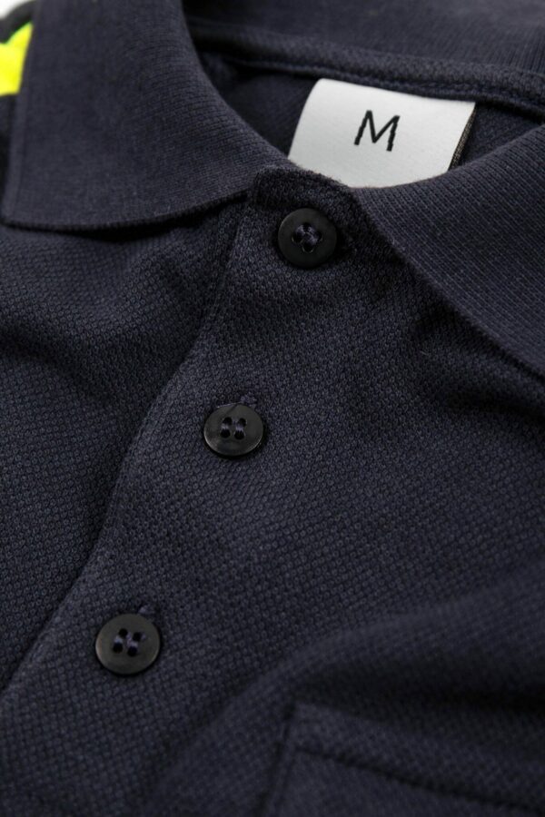 Weiches und bequemes Poloshirt 784 PFLA mit langen Ärmeln aus Strickgewebe mit inhärentem Flammschutz. Strahlend gelbe Einsätze an den Schultern sorgen für eine bessere Sichtbarkeit.