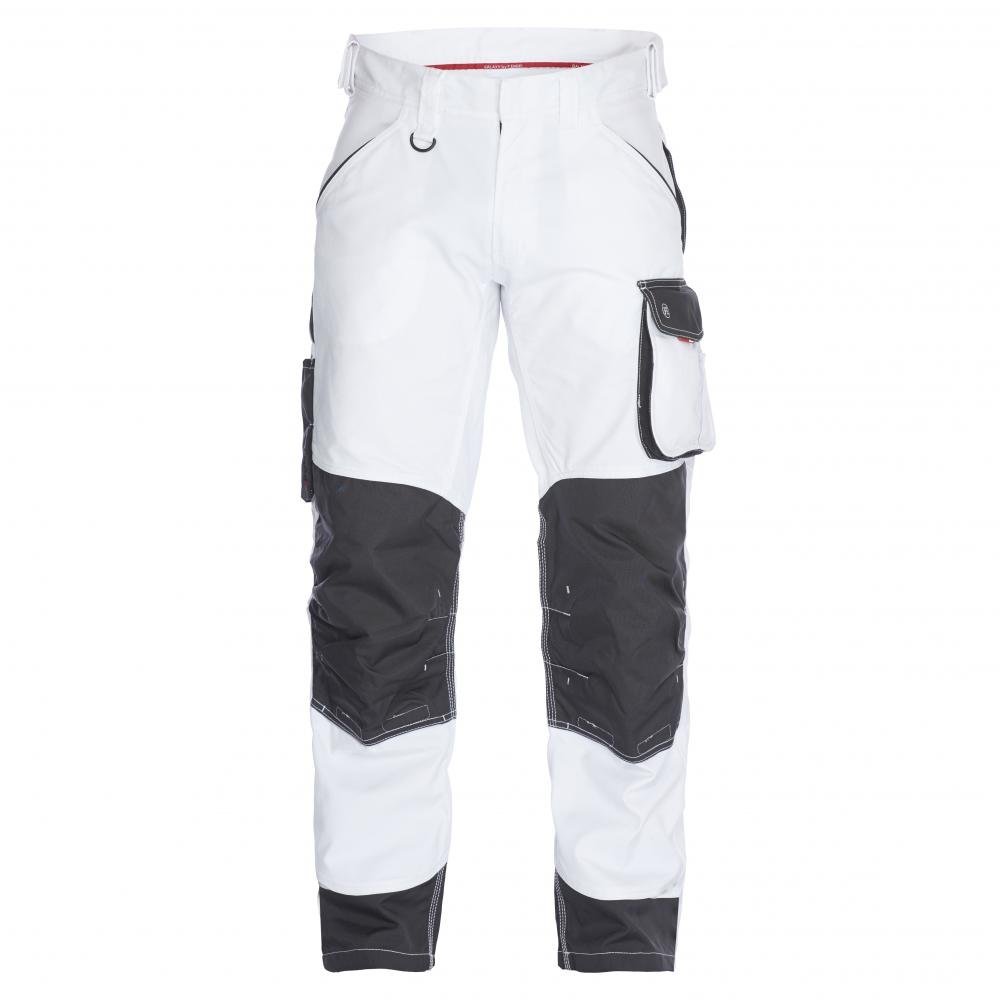 Funktionelle Arbeitshose mit vielen Details. Optimale Passform, u. a. sorgen ergonomisch geformte Knie und Panel an der Innennaht im Schritt für mehr Bequemlichkeit. Zwei geräumige, schräg sitzende Einschubtaschen vorne. Breite Werkzeugschlaufen mit Klettverschluss an den Seiten. Schlaufe mit D-Ring (vorne) zur Befestigung einer IDKarte. Zwei geräumige Gesäßtaschen mit Patte und Klettverschluss. Schenkeltasche mit Reißverschlusstasche fürs Handy, zusätzliche kleine Tasche. Sie ist geräumig und sorgt dank des freihängenden Bodens für mehr Bewegungsfreiheit. Unten verstärkte Zollstocktasche mit zusätzlichen Fächern. Auch die Zollstocktasche hat einen freihängenden Boden. Knieverstärkung/Knietasche mit Klettverschluss unten sowie zwei Einstellmöglichkeiten für Knieschutzkissen. Verstärkter Saum der Hosenbeine hinten und vorne für extra hohe Verschleißfestigkeit. Reflexstreifen an den Knien und unten an den Hosenbeinen für mehr Sichtbarkeit. Für Industriewäsche geeignet.