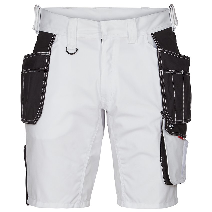 Funktionelle Shorts mit vielen Details. Optimale Passform, mit Panel an der Innennaht im Schritt für mehr Bequemlichkeit. Zwei geräumige, schräg sitzende Einschubtaschen sowie zwei Holstertaschen vorne. Breite Werkzeugschlaufen mit Klettverschluss an den Seiten. Schlaufe mit D-Ring (vorne) zur Befestigung einer IDKarte. Zwei geräumige Gesäßtaschen mit Patte und Klettverschluss. Schenkeltasche mit Reißverschlusstasche fürs Handy, zusätzliche kleine Tasche. Sie ist geräumig und sorgt dank des freihängenden Bodens für mehr Bewegungsfreiheit. Unten verstärkte Zollstocktasche mit zusätzlichen Fächern. Auch die Zollstocktasche hat einen freihängenden Boden. Für Industriewäsche geeignet.
