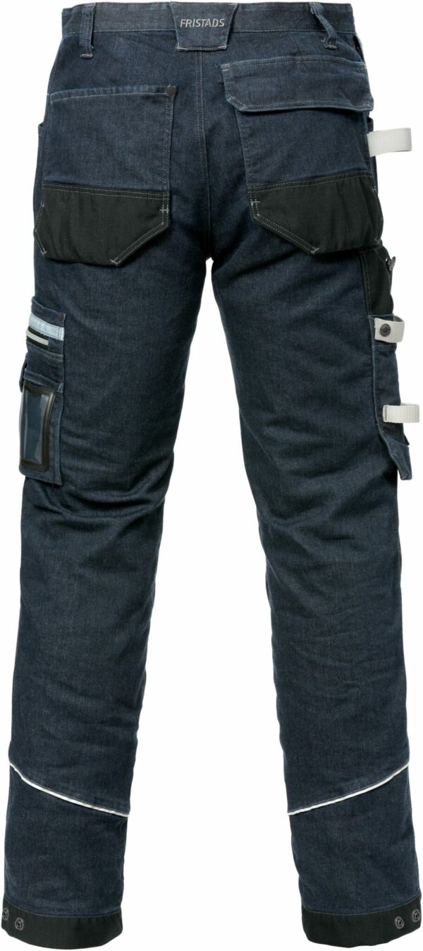CORDURA®-Denim 4-Wege-Stretch-Material / 2 CORDURA®-verstärkte, lose hängende Außentaschen – eine mit 3 kleinen Taschen und Werkzeugschlaufe, die andere mit Werkzeugtasche und Reißverschlusstasche / 2 geräumige Vordertaschen / D-Ring / 2 geräumige CORDURA®-verstärkte Gesäßtaschen – eine mit Patte und Klettverschluss / Doppelt verstärkte Schrittnaht / Hammerschlaufe / Hosenschlitz mit Reißverschluss / CORDURA®-verstärkte Zollstocktasche mit Werkzeugtasche, Stifttasche, Knopf und Schlaufe für ein Arbeitsmesser / Multifunktionale Beintasche mit Handytasche, Ausweistasche, Reißverschlusstasche sowie großer Innentasche mit Druckknopf / Taschen mit Metallnieten-Verstärkung an allen besonders beanspruchten Stellen / Ergonomisch geformte Knie / CORDURA®-verstärkte Knietaschen, mit Öffnung innen, für höhenverstellbare Kniepolster / CORDURA®-verstärkte, mit Druckknöpfen verstellbare Beinabschlüsse / Nähte in Kontrastfarbe / Reflexpaspelierung an den Beinabschlüssen / Geprüft und zugelassen gemäß EN 14404 (in Kombination mit Kniepolster 124292) / OEKO-TEX® zertifziert. Material: 73% Baumwolle, 17% Polyamid, 8% Elastomultiester, 2% Elasthan. Gewicht: 322 g/m².
