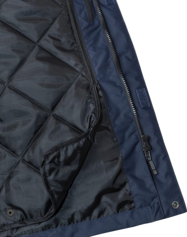 Airtech®, wind- und wasserdicht sowie atmungsaktiv / Herausnehmbares Steppfutter / Abnehmbare, verstellbare gefütterte Kapuze / Kragen mit Fleece-Futter / Über die Schulter führende Reflexstreifen / Verdeckter 2-Wege-Reißverschluss mit Druckknopfleiste bis zum oberen Kragenrand / 2 Brusttaschen mit Reißverschluss / Ausweistasche / Napoleontasche mit innenliegender Handytasche, auch bei geschlossenem Kleidungsstück zugänglich / 2 geräumige Vordertaschen mit Patte und verdecktem Druckknopfverschluss / 2 Fleece-gefütterte Einschubtaschen / Schlaufe für Mikrofon (innen) / 2 Innentaschen mit Reißverschluss / Verstellbare Taille / Elastische Ärmelinnenbündchen mit Daumenschlaufen / Verstellbare Armabschlüsse / Reißverschluss im Futter ermöglicht Stickereien und Wärmetransfers / Wassersäule 10.000 mm / Atmungsaktives Airtech®-Material RET <12 / Geprüft und zugelassen gemäß EN ISO 20471 Klasse 3, Farbe 271 ist nach RIS-3279-TOM: 2016 Ausgabe 1 UK Railway Standard zugelassen, EN 343 Klasse 3/3 und EN 342 / Industriewäsche geeignet gemäß ISO 15797 / OEKO-TEX® zertifiziert. Material: Außenmaterial: 100% Polyester. Futter: 100% Polyester.