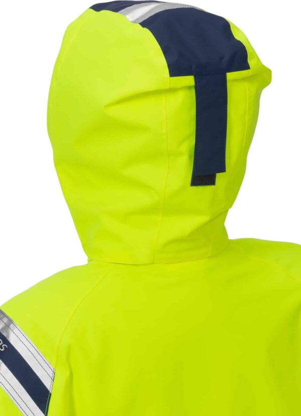 Airtech®, wasser- und winddicht sowie atmungsaktiv / Steppfutter / Abnehmbare und verstellbare, gefütterte Kapuze / Fleece-gefütterter Kragen / Reflektierende Details an den Schultern / Verdeckter Reißverschluss mit Druckknopfleiste bis zum oberen Kragenrand / 2 Brusttaschen mit Reißverschluss / Ausweistasche / Napoleontasche mit innenliegender Handytasche, auch bei geschlossenem Kleidungsstück zugänglich / 2 Fleece-gefütterte Vordertaschen mit Reissverschluss / 2 Innentaschen mit Reissverschluss / Belüftungsnetz im Armloch / Verstellbare Ärmelenden / Elastischer Innenbund mit Daumengriff / Verstellbarer Saum mit Kordelzug / verlängerte Rückenpartie / Reißverschluss im Futter ermöglicht Stickereien und Wärmetransfers / Wassersäule 10. 000 mm / Atmungsaktivität Airtech®-Material RET <12 / Geprüft und zugelassen gemäß EN ISO 20471 Klasse 2 – Größe XS und Klasse 3 – Größen S-4XL, EN 342 und EN 343 Klasse 3/1. Obermaterial erfüllt Klasse 3 für Wasserdampfdurchlässigkeit; EN 343 Klasse 3/3 / Farbe 271 ist zugelassen gemäß RIS-3279-TOM: 2016 Ausgabe 1 UK Railway Standard / Industriewäsche geeignet gemäß ISO 15797 / OEKO-TEX® zertifiziert. Material: Außenmaterial: 100% Polyester. Futter: 100% Polyester.