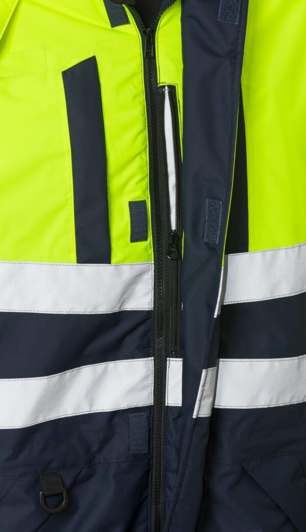 Airtech®, wind- und wasserdicht sowie atmungsaktiv / Vollständig gefüttert (Steppfutter) / Über die Schulter führende Reflexstreifen / Verdeckter 2-Wege-Reißverschluss mit Druckknopfleiste bis zum oberen Kragenrand / Kragen mit Fleece-Futter / Abnehmbare, verstellbare gefütterte Kapuze / 2 Brusttaschen mit Reißverschluss / Ausweistasche / Napoleontasche mit innenliegender Handytasche, Knopfloch und Schlaufe für Kopfhörer, von außen zugänglich / 2 Innentaschen mit Reißverschluss / Verstellbares Zugband in der Taille / Elastische Ärmelinnenbündchen mit Daumenschlaufen / Verstellbare Ärmelabschlüsse / 2 Vordertaschen mit verdecktem Reißverschluss / 2 Gesäßtaschen mit Patten und Klettverschluss / Zollstocktasche mit extra Tasche / 2 geräumige Beintaschen mit Patte und Klettverschluss / Ergonomisch geformte Knie / Knietaschen, mit Öffnung innen, für höhenverstellbare Kniepolster / Verdeckter Bein-Reißverschluss bis zum Knie / Verstellbare Beinabschlüsse / Schneesperre / Reißverschluss im Futter ermöglicht Stickereien und Wärmetransfers / Wassersäule 10.000 mm / Atmungsaktives Airtech®-Material RET <12 / Geprüft und zugelassen gemäß EN ISO 20471 Klasse 3, Farbe 271 ist nach RIS-3279-TOM: 2016 Ausgabe 1 UK Railway Standard zugelassen, EN 343 Klasse 3/1, EN 342 und EN 14404 (in Kombination mit Kniepolster 124292). Hauptmaterial geprüft gemäß EN 343 Klasse 3/3 / Industriewäsche geeignet gemäß ISO 15797 / OEKO-TEX® zertifiziert. Material: Außenmaterial: 100% Polyester. Futter: 100% Polyester.