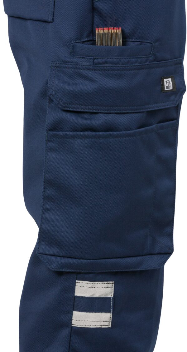 Schmutz-, öl- und wasserabweisend / Doppelt abgesteppte Reflexstreifen / 2 Vordertaschen / D-Ring / Doppelt verstärkte Schrittnaht / 2 Gesäßtaschen mit Patte und Klettverschluss / Beintasche mit Handytasche, D-Ring und Ausweistasche / Hammerschlaufe / CORDURA®-verstärkte Zollstocktasche mit Werkzeugtasche sowie 2 Knöpfe und Schlaufen für 2 Arbeitsmesser / Ergonomisch geformte Knie / CORDURA®-verstärkte Knietaschen, mit Öffnung innen, für höhenverstellbare Kniepolster / CORDURA®-verstärkte Beinabschlüsse / Geprüft und zugelassen gemäß EN ISO 20471 Klasse 1 und EN 14404 (in Kombination mit Kniepolster 124292) / Zugelassen nach 50 Wäschen / Industriewäsche geeignet gemäß ISO 15797 / OEKO-TEX® zertifiziert. Material: 80% Polyester, 20% Baumwolle. Fluoreszierendes Material: 65% Polyester, 35% Baumwolle. Verstärkungen: 100% Polyamid.