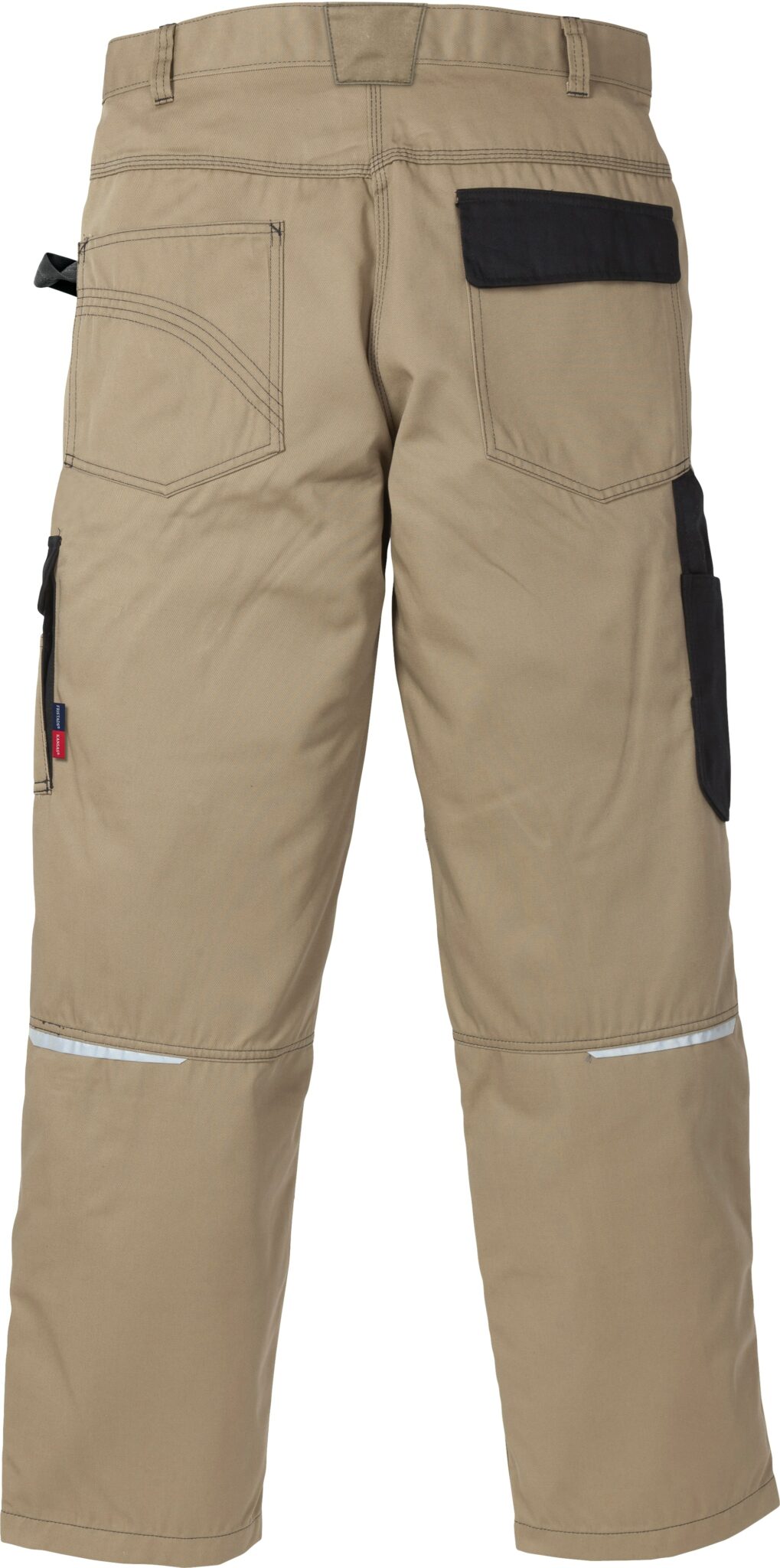 Luxe-Qualität / Zweifarbig / 3-Nadel-Kappnähte / Kontrastnähte / Halbhoher Bund / Sattelschnitt / Diagonal geschnittene Kniepartie / Reflex-Applikationen an Beinvorderseite und -rückseite / In die Nähte integrierte Knietaschen für höhenverstellbare Kniepolster / Beintasche mit Patte / Handytasche mit Klettverschluss und Stifttasche / CORDURA®-verstärkte doppelte Zollstocktasche / 2 Gesäßtaschen mit Dehnungsfalten – eine mit Patte / Hammerschlaufe / Geprüft und zugelassen gemäß EN 127440 (in Kombination mit Kniepolster 124292) / Industriewäsche geeignet gemäß ISO 15797 / OEKO-TEX® zertifiziert. Material: 65% Polyester, 35% Baumwolle. Verstärkung: 100% Polyamid.