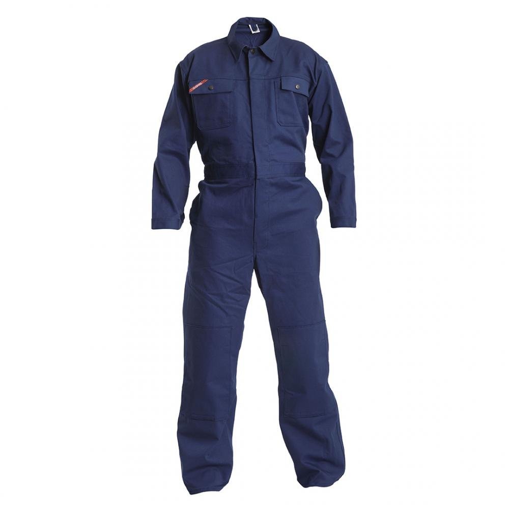 Kombination zum Knöpfen. Zwei Brusttaschen mit Patte. Zwei Einschubtaschen. Zwei Gesäßtaschen, eine mit Klettverschluss. Ärmeltasche links. Verdeckte Knopfleiste. Zollstocktasche und Hammerschlaufe. Bewegungsfalten im Rücken. Durchgriff rechts.