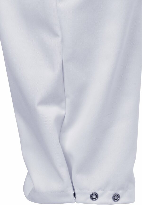 Erfüllt die Norm DIN 10524 / Verstellbare Bundweite mit Gummizug / Verstellbare Beinabschlüsse mit Metallknöpfen / Zonenmarkierung der Kleidungsstücke mit subliminalem Transfer oder Stickerei sind erlaubt / Industriewäsche geeignet gemäß ISO 15797 / OEKO-TEX® zertifiziert. Material: 65% Polyester, 35% Baumwolle.