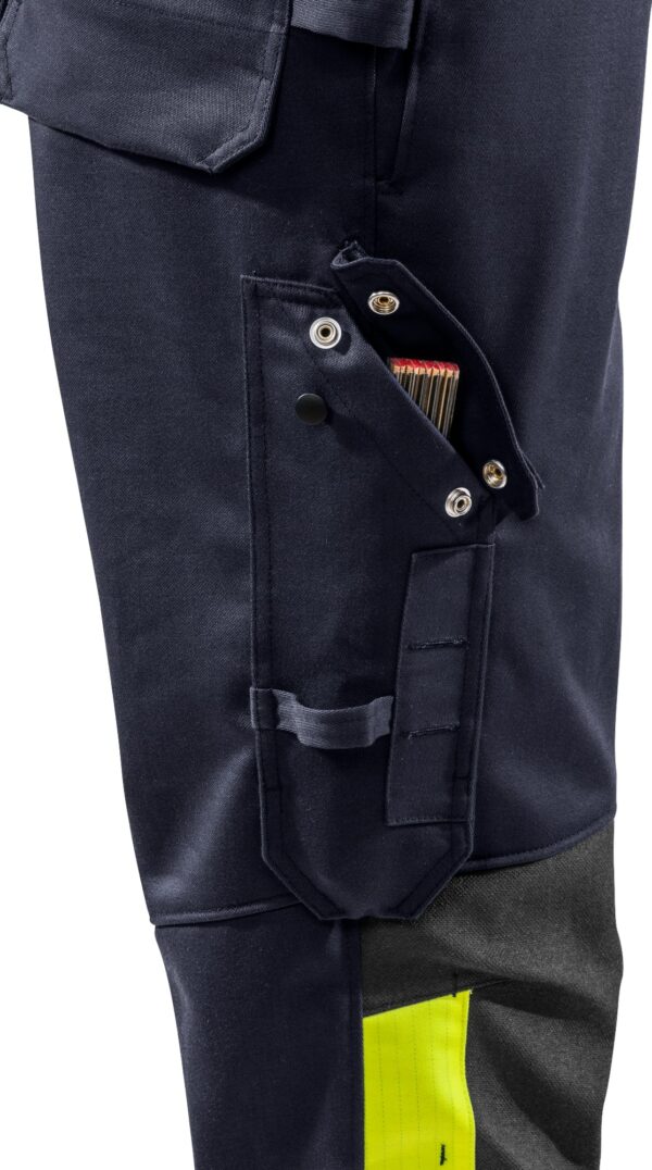 Verdeckter Reißverschluss mit Druckknopfleiste bis zum oberen Kragenrand / 2 CORDURA®-verstärkte Brusttaschen mit Patte und verdecktem Druckknopfverschluss – eine mit D-Ring / 2 Vordertaschen / Doppelt verstärkte Schrittnaht / 2 CORDURA®-verstärkte Gesäßtaschen mit Patte und verdecktem Druckknopfverschluss / Hammerschlaufe / CORDURA®-verstärkte Zollstocktasche mit Patte und verdecktem Druckknopfverschluss, Stifttasche sowie Knopf und Schlaufe für Arbeitsmesser / Beintasche mit Patte und verdecktem Druckknopfverschluss, Handytasche mit Patte und Klettverschluss / Aramidverstärkte Knietaschen mit Außenöffnung und Klettverschluss / Höhenanpassung der Kniepolster in den Knietaschen möglich / Geprüft und zugelassen gemäß EN 61482-1-2 Klasse 1, EN 61482-1-1 ATPV: 19 cal/cm² ELIM: 13 cal/cm², EN ISO 11612 A1 A2 B1 C1 E3 F1, EN ISO 11611 A1, A2 Klasse 2, EN 1149-5, EN 13034 Typ PB (6), EN 14404 zusammen mit Kniepolstern 124292 / Zugelassen nach 50 Wäschen / Industriewäsche geeignet gemäß ISO 15797 / OEKO-TEX® zertifiziert. Material: 79% Baumwolle, 20% Polyester, 1% antistatische Faser. Verstärkung: 98% Aramidfaser, 2% antistatische Faser.
