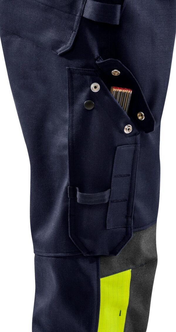 Verdeckter 2-Wege-Reißverschluss mit Druckknopfleiste bis zum oberen Kragenrand / 2 geräumige Brusttaschen mit Patte und verdecktem Druckknopfverschluss, eine mit D-Ring / Innentasche mit Knopf und Handytasche mit Klettverschluss und Patte / Verstellbare Bundweite mit elastischem Band und Knopf / Verstellbare Armabschlüsse mit Druckknopfverschluss / Doppelt verstärkte Schrittnaht / 2 Vordertaschen / 2 CORDURA®-verstärkte Gesäßtaschen mit Patte und verdecktem Druckknopfverschluss / CORDURA®-verstärkte Zollstocktasche mit Patte und verdecktem Druckknopfverschluss sowie Knopf und Schlaufe für Arbeitsmesser / Beintasche mit Patte und verdecktem Druckknopfverschluss, Handytasche mit Patte, Klettverschluss und D-Ring / Hammerschlaufe / Aramidverstärkte Knietaschen mit Außenöffnung und Klettverschluss / Höhenanpassung der Kniepolster in den Knietaschen möglich / Geprüft und zugelassen gemäß EN 61482-1-2 Klasse 1, EN 61482-1-1 ATPV: 19 cal/cm² ELIM: 13 cal/cm², EN ISO 11612 A1 A2 B1 C1 E3 F1, EN ISO 11611 A1, A2 Klasse 2, EN 1149-5, EN 13034 Typ PB (6), EN 14404 zusammen mit Kniepolstern 124292 / Zugelassen nach 50 Wäschen / Industriewäsche geeignet gemäß ISO 15797 / OEKO-TEX® zertifiziert. Material: 79% Baumwolle, 20% Polyester, 1% antistatische Faser. Verstärkung: 98% Aramidfaser, 2% antistatische Faser.