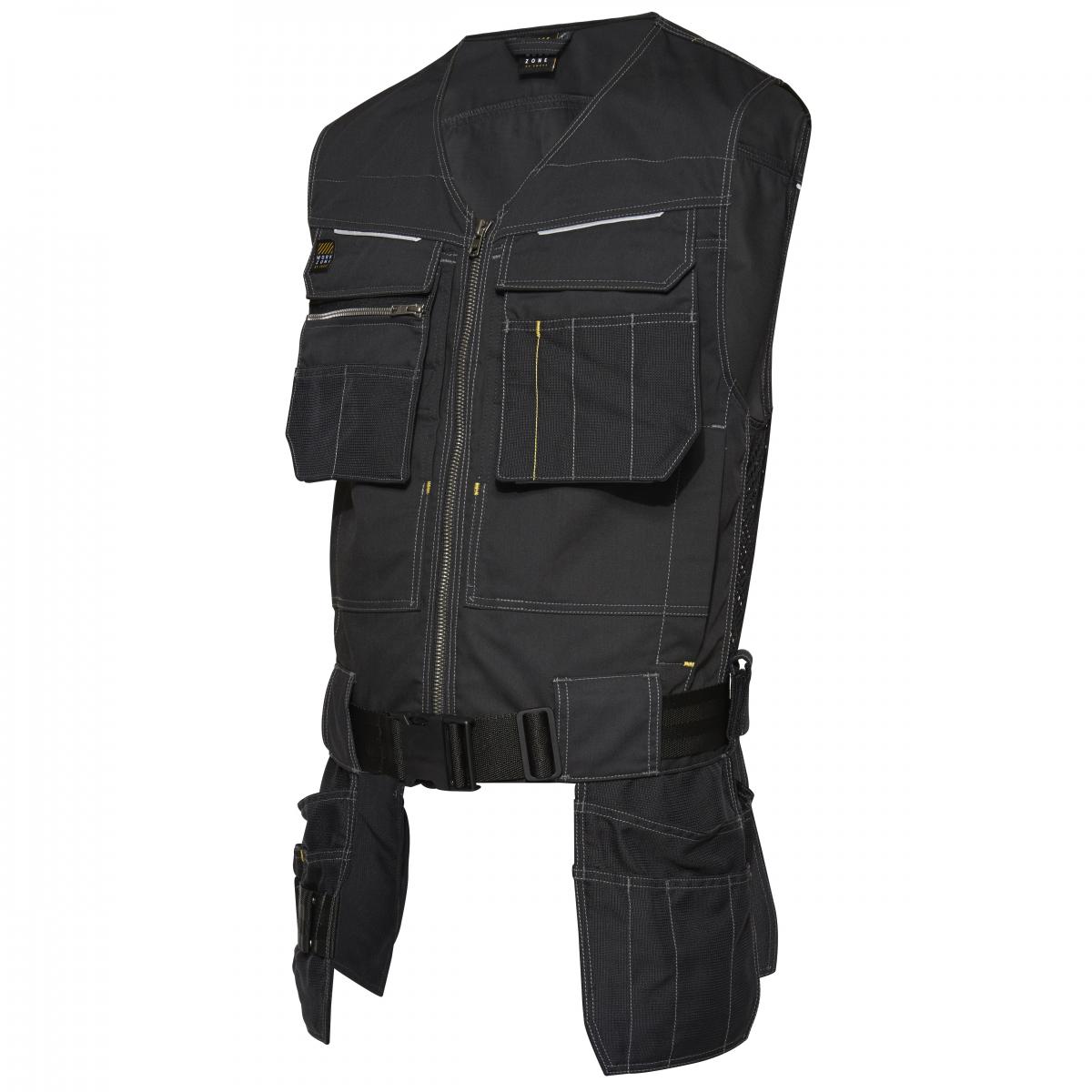 Funktionelle Multifunktionsweste mit Kontraststeppnähten. Weste mit Frontreißverschluss und verstärkten Brusttaschen. Seitliches Netzgewebe für gute Belüftung. Zwei Einschubbrusttaschen mit Klettverschluss zur Aufbewahrung von Unterlagen. Brusttaschen mit Patten und Sicherheitsschlaufe, beide mit Innenfächern. Zusätzliche Reißverschlusstasche in der rechten Brusttasche. Zwei geräumige Einschubtaschen. Vorne und hinten jeweils zwei Holstertaschen mit vielen Fächern für Werkzeug – ideal für Elektriker und den Zimmermann. Robuster verstellbarer Gürtel. Reflektoren auf der Brust und am Rücken für mehr Sichtbarkeit. Der mit jeder Tech Zone Hose mitgelieferte ID-Kartenhalter kann an der Brusttasche befestigt werden.