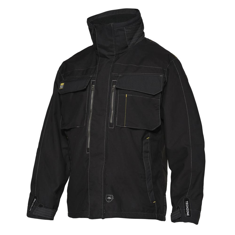 Winddichte und atmungsaktive Shell-Jacke, kombinierbar mit Innenjacke (0252-118 oder 0652-118). Verdeckte Druckknöpfe und Metallreißverschluss vorne. Zwei große Brusttaschen mit Patte sowie zwei vertikale Brusttaschen mit Reißverschluss, eine in praktischer Größe zum Aufbewahren von Dokumenten. Mehrere praktische Innentaschen eine in praktischer Größe zum Aufbewahren von Dokumenten sowie mehrere geräumige Innentaschen. Abnehmbare Kapuze, die über den Arbeitshelm passt. Die Kapuze ist gelb fluoreszierend für mehr Sichtbarkeit. Einstellmöglichkeit an Bund und Manschetten. Die Jacke hat Verstärkungen an stark strapazierten Stellen sowie Reflexpaspeln und reflektierendes Material für mehr Sichtbarkeit. Verschweißte Nähte. Reißverschluss im Futter (Möglichkeit zum Anbringen von Aufdruck/Stickerei). Der mit jeder TechZone Hose mitgelieferte ID-Kartenhalter kann an der Brusttasche befestigt werden.