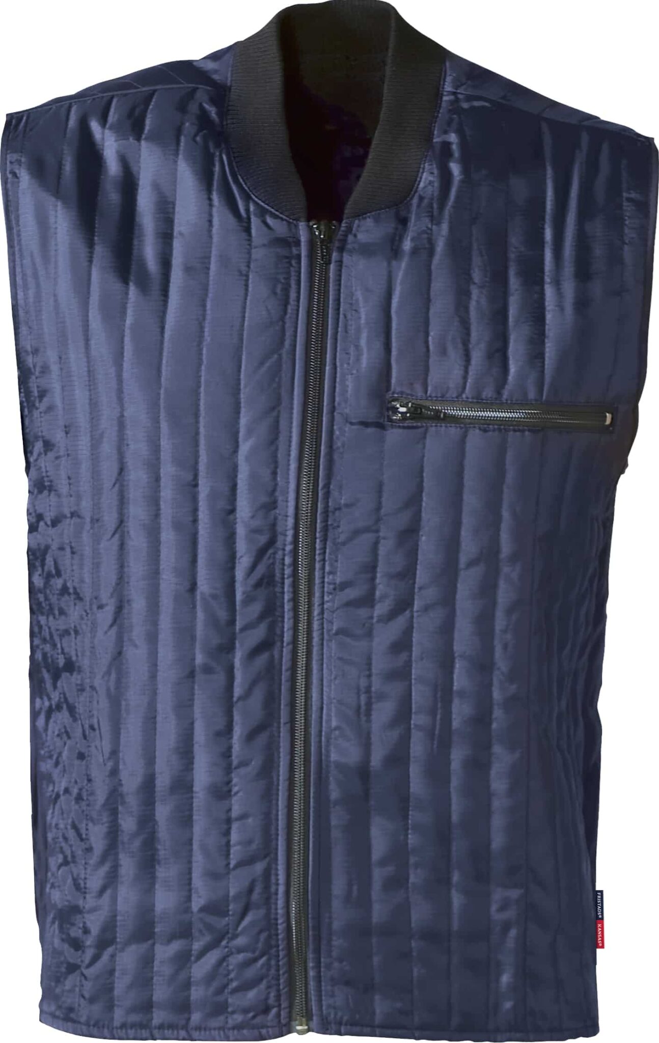 Leichte flexible Steppweste 5300 mit verlängerter Rückenpartie, die nach innen hochgeschlagen und befertigt werden kann. Die seidige Oberfläche des Materials erleichtert das An- und Ausziehen.