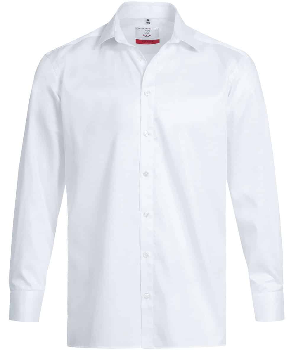 Das Herren-Hemd / Comfort Fit, aus der GREIFF Premium Kollektion besticht durch die neue Non Iron Technologie. Diese sorgt dafür, dass das Kleidungsstück nicht gebügelt werden muss, aber trotzdem glatt und ordentlich ausschaut. Zudem bewirkt die verarbeite Elasthanfaser eine besondere Dehnfähigkeit und Rücksprungkraft. Diese Eigenschaften sind verantwortlich, dass Bewegungen nicht eingeschränkt werden. Die Comfort Fit Variante ist mit einem New-Kent Kragen, verstellbaren Manschetten und zwei Rückenfalten versehen. Zudem ist diese locker geschnitten und infolgedessen perfekt für den klassischen Typ geeignet. Verfügbar ist das Produkt in den Größen 39/40 bis 47/48. Obendrein wiegt das Gewebe nur 140 g/m² und verspricht demzufolge einen hohen Tragekomfort.