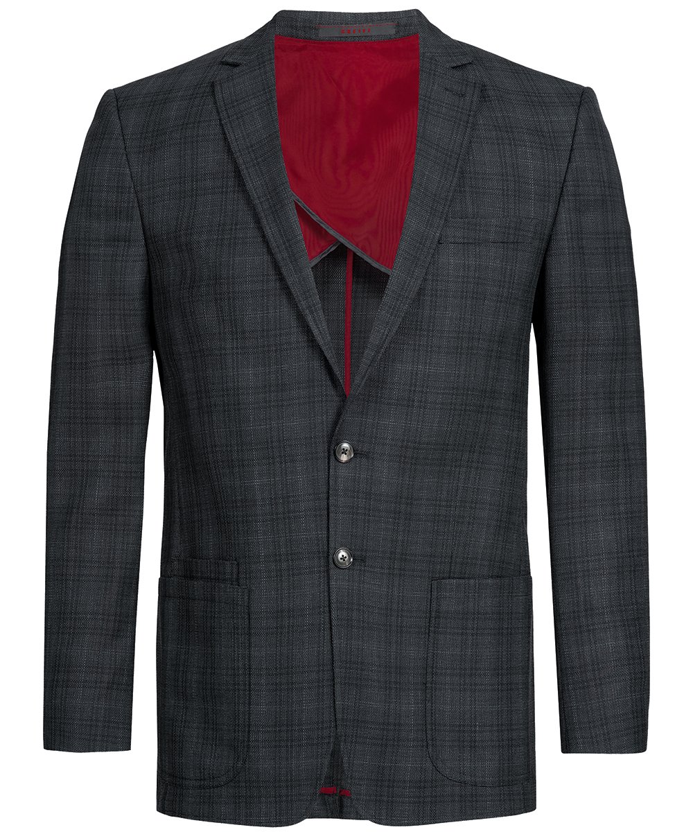 Das sportliche Herren-Sakko / Regular Fit, aus der Greiff Casual Kollektion ist für Unternehmen, welche einen schicken aber lässigen Stil bevorzugen. Mit diesem sportlichen Teilchen tritt Ihr Team entspannt und doch professionell im Beruf auf. Ein kleiner Styling-Tipp ist das schwarz karierte Sakko kombiniert mit einer marinefarbenen Chino und einem weißen Poloshirt. Zudem sorgt das Modell mit den beiden aufgesetzten Taschen, der Doppeltasche, der Brustleistentasche und den beiden Innentasche für ausreichend Stauraum. Das Innenfutter der Brustleistentasche kann so trapiert werden, dass es wie ein rotes Einstecktuch erscheint. Mit diesem tollen Kontrast wird das Sakko zu einem richtigen Eyecatcher. Mehr Bewegungsfreiheit und einen optimalen Tragekomfort wird durch den Rückenschlitz, sowie das weiche Innenfutter geboten. Bei Größe 50 beträgt die Rückenlänge des Produktes 73 cm. Obendrein sind die Größen 44 bis 62 erhältlich.