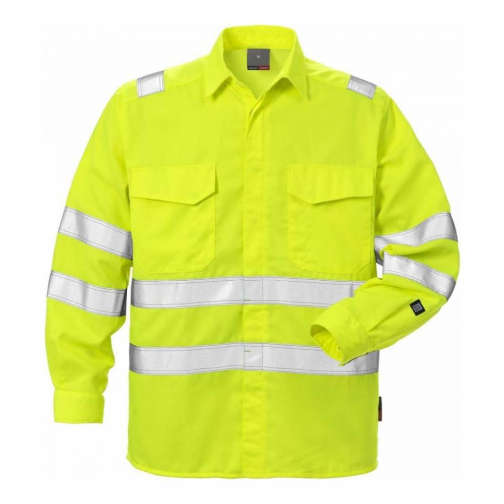 Warnschutz-zertifiziertes Hemd 7049 mit verdeckter Knopfleiste und Baumwolle-Innenseite für optimalen Tragekomfort. Zugelassen für die Industriewäscherei.