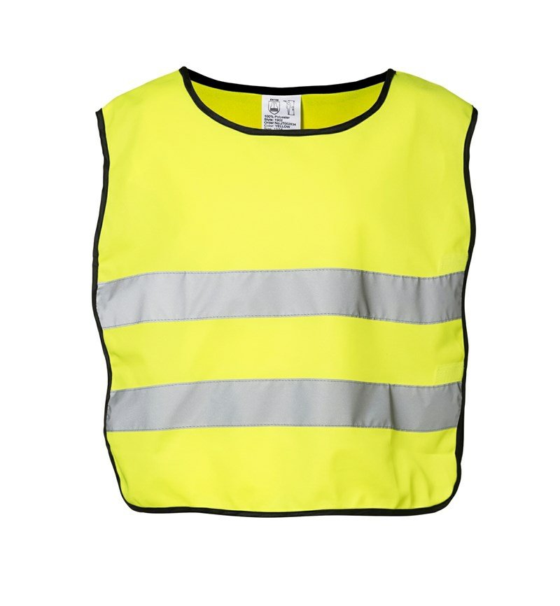 Reflektorüberziehweste mit Gummiband und Klettverschluss an den Seiten. – 100 % polyester – Gemäß EN 1150 Standard zugelassen – 4/6, 8/10, 12/14